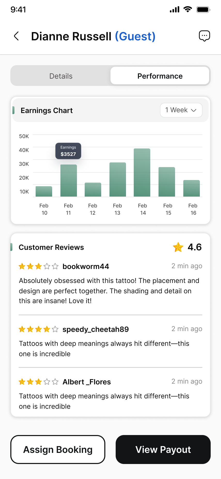 Connect your whole team. Coordinate artists, manage guest spots, and share schedules across multiple studios - all through one unified platform.
